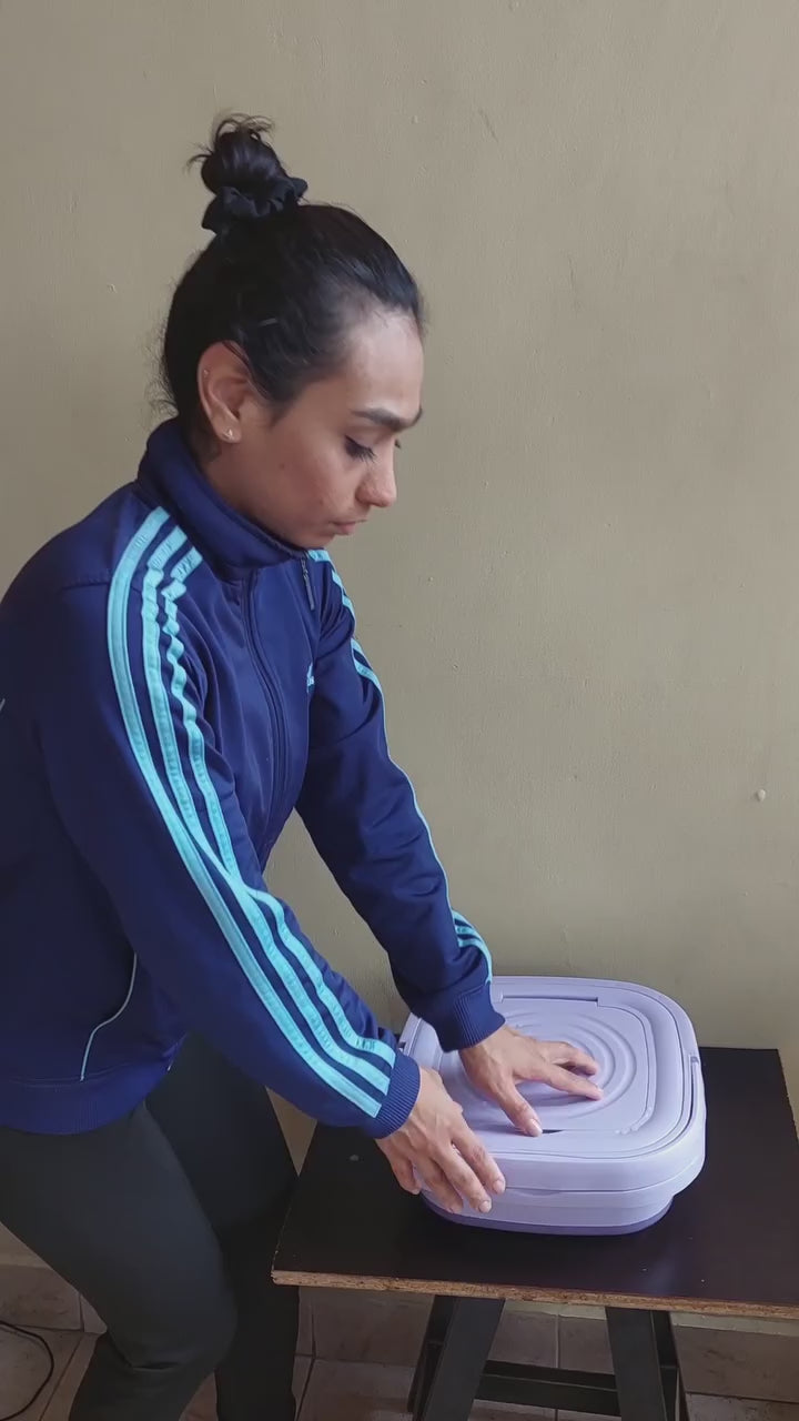 Mini lavadora portátil plegablees un dispositivo compacto y práctico diseñado para lavar pequeñas cargas de ropa con facilidad. Su diseño plegable permite ahorrar espacio, lo que la hace ideal para apartamentos, viajes, dormitorios o incluso para lavar ropa delicada como ropa de bebé, prendas íntimas o calcetines.Características principales:• Diseño plegable: Se puede compactar para facilitar su almacenamiento cuando no está en uso.• Tamaño portátil: Ligera y fácil de transportar.• Funcionamiento sencillo: Cuenta con botones táctiles para seleccionar ciclos de lavado.• Drenaje incorporado: Incluye una válvula de desagüe para vaciar el agua fácilmente.• Eficiencia energética: Consume poca electricidad y agua, ideal para uso ocasional.Es una excelente opción para quienes buscan una solución práctica y eficiente para lavar ropa en espacios reducidos o en situaciones de viaje.